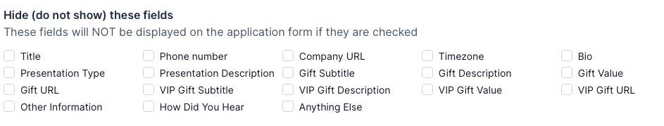 By default, each of these fields are included in the application. You can check any of these boxes to turn off collecting the information.