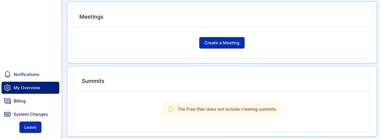 There are currently 2 types of Events you can create on EventRaptor; Meetings and Summits.