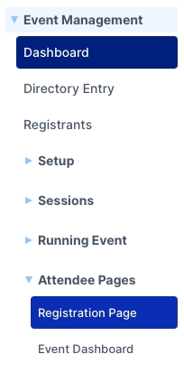 In the menu, you can go directly to the Registration Page by clicking "Registration Page" under the Attendee Pages submenu.