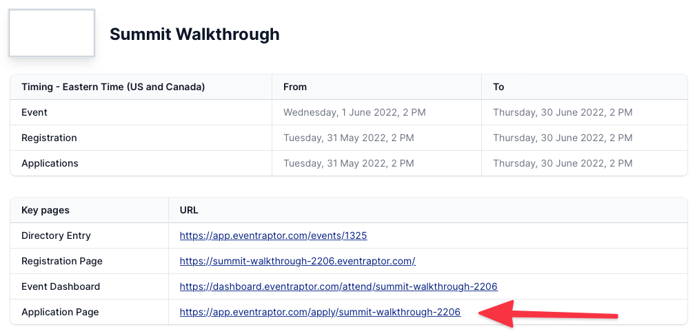 • Option 3: Send a direct link to your Application Page. You can find this by going to your Dashboard and finding the Application Page link. Note: this link will work even if the application end date has passed, so only send this link to potential speakers you have already discussed the opportunity with and you're willing to make an exception for.